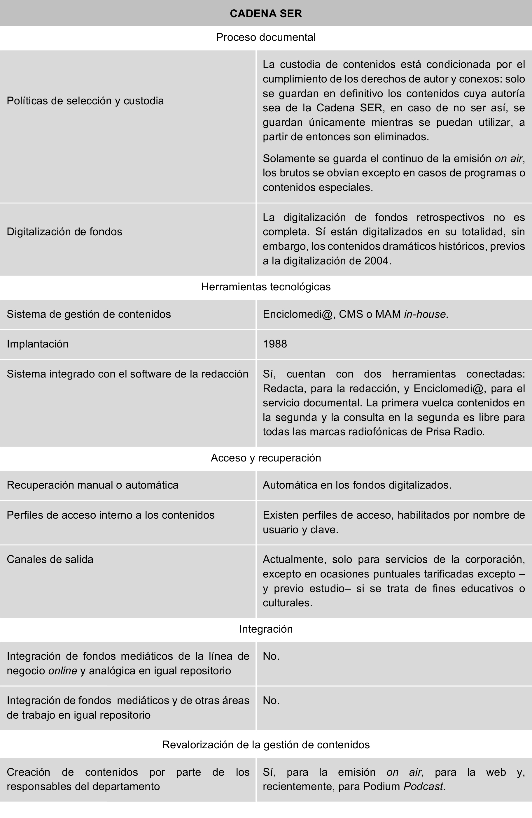 El género de ficción fue protagonista en la programación radiofónica de la posguerra por adaptación al imperativo dictatorial en los indicativos de titularidad privada. En este contexto, la Cadena SER abanderó el radio drama en España, cuyos años dorados se concentraron entre las décadas de los cuarenta y los setenta. A colación del resurgir de este género en la oferta mediática nacional, se plantea el objetivo de investigar si las nuevas formas de producción y distribución digitales facilitan no solo la oferta de nuevos contenidos de ficción, sino también y especialmente la reutilización de fondos de archivo de la Cadena SER, a través del estudio de Podium Podcast. Para ello, se analiza, en primer lugar, el modelo de gestión de contenidos del grupo y, después, la visibilización de fondos de archivo en el caso analizado. Con un enfoque cualitativo, la metodología aplicada se fundamenta en las entrevistas en profundidad y la observación indirecta. Los resultados obtenidos permiten concluir que desde Prisa Radio se reconoce el valor de este género desde el punto de vista documental y, aunque olvidados durante años, recientemente se apuesta por su reutilización contextualizada de acuerdo a criterios periodísticos y culturales, fundamentalmente a través de podcasts.Descargas