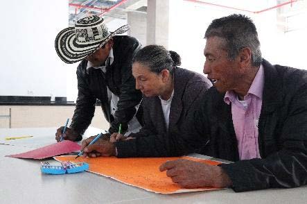 De este modo, los participantes, organizados en grupos, debían evocar sus territorios de origen, seleccionar uno o integrar algunos, realizar bocetos de estas propuestas y plasmarlos en papel de biomasa renovable por medio de la acuarela. Al final, los grupos socializaron sus trabajos. Se destacan los siguientes puntos de vista sobre la experiencia: