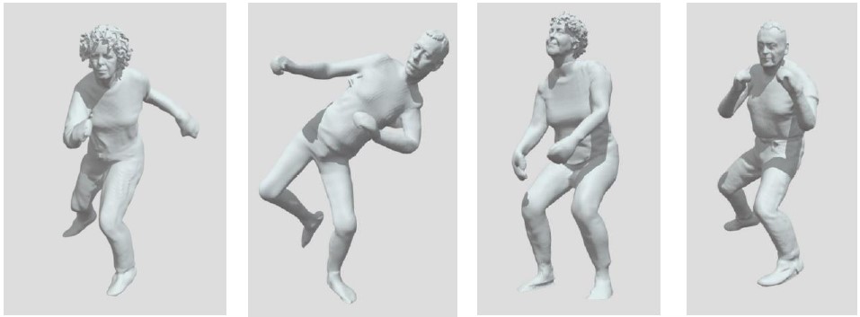 El proceso seguido con cada uno de los modelos atraviesa varias fases. Comienza con un escaneo 3D, al que le sigue el procesamiento de la malla en un programa de modelado 3D; a continuación, se sube el modelo 3D al programa online Mixamo.com, que permite aplicar un variado elenco de animaciones; y, por último, se importa el modelo animado en la plataforma Sketchfab, que permite visualizar y publicar los modelos en movimiento (Tabla 1).