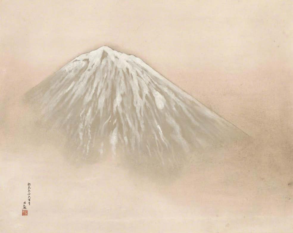 Durante el periodo Meiji, en el contexto de la reforma artística liderada por el crítico de arte Okakura Tenshin (1863-1913), el gofun adquirió protagonismo en el estilo conocido como morotai (Kao, 2009, p. 68). Este estilo se caracteriza por aplicar sucesivas capas de gofun que, combinadas con otros colores, permite transiciones tonales naturales que evocan una sensación de profundidad y una atmósfera etérea. Al difuminar los contornos definidos entre los objetos y el fondo, se genera un efecto nebuloso y suave. El mejor ejemplo es la obra Mount Fuji (Fig. 1), de Yokoyama Taikan (1868-1958).