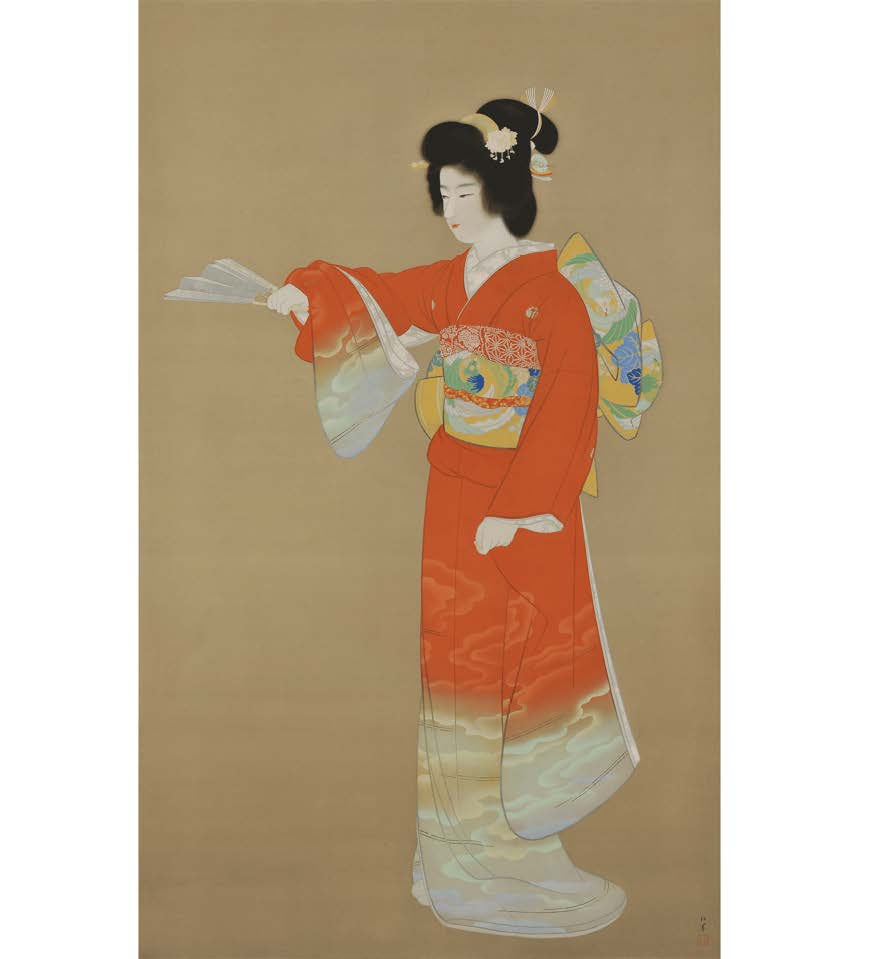 Asimismo, el gofun es ampliamente utilizado en el género de pinturas de Bijin-ga,2 en las que constituye el pigmento principal para representar la piel de las figuras. A través de una cuidada aplicación en capas y de un proceso de sombreado, el gofun logra una textura semitransparente que les confiere tridimensionalidad a las figuras al tiempo que preserva la suavidad característica de la piel. Las obras de Uemura Shōen (18751949) ejemplifican con gran maestría esta técnica (Fig. 2).