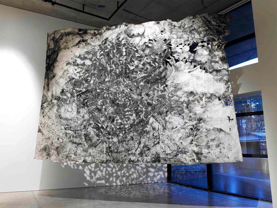 En la actualidad, distintos artistas contemporáneos de la pintura japonesa continúan explorando nuevas formas de expresión experimentando con materiales y técnicas, sin dejar de dialogar con la tradición. Un ejemplo destacado es Natsunosuke Mise, que emplea washi3, tinta china, gofun —en combinación con materiales occidentales como el gesso—, pintura acrílica o impresión por inyección de tinta, así como técnicas mixtas como el collage y el grabado. Además, rompe con los formatos tradicionales de montaje y exhibición, abriendo así nuevas perspectivas para la pintura japonesa en el contexto del arte contemporáneo (Fig. 3).