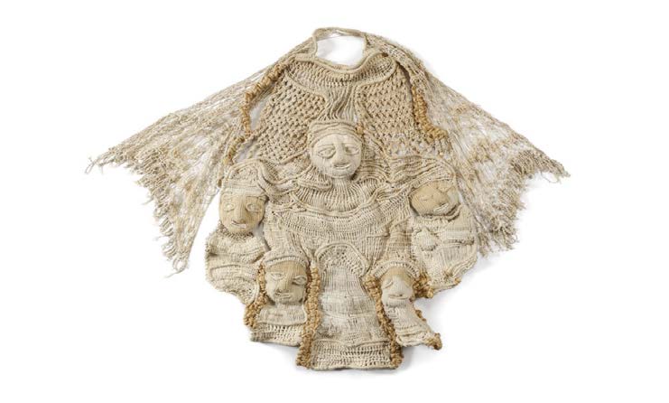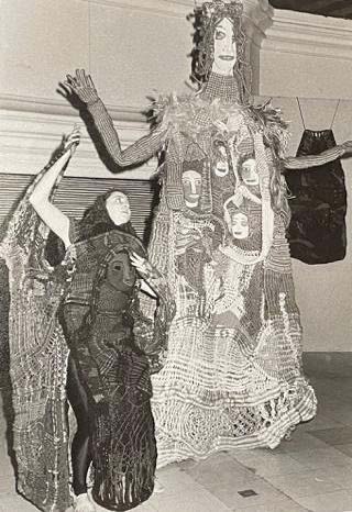El interés por “el arte de anudar”, la necesidad de encontrar nuevas referencias y aumentar las posibilidades creativas con el material, la llevaron a estudiar las piezas de la colección de museos etnográficos y antropológicos, principalmente del Musée de l’Homme de París. De ese acervo seleccionó una serie de “objetos fabricados con redes textiles anudadas, procedentes de distintas civilizaciones del mundo y de distintas épocas” que exhibió –junto con sus propias obras y las de las mujeres que eran miembros de su taller– en la exposición De nœud aux nouages... que se celebró a principios de 1985 en la Biblioteca Forney de París.