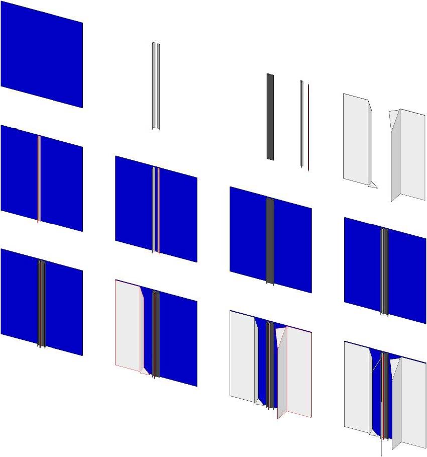 La combinación de esta agrupación de elementos se efectúa siguiendo una metódica serie de rotaciones ortogonales, hasta obtener cuatro permutaciones diferentes resultantes a partir de las premisas fijadas previamente como reglas de juego. La economía de medios en la variedad de elementos y operaciones que Robert Ferrer desplegaba en esta obra contrasta con la diversidad de soluciones obtenidas. Puesto que el módulo repetido se transfigura gracias al solapamiento de los diferentes perfiles y varillas, y le imprime una gran multiplicidad de apariencias variables para cada solución de esquina (Fig. 8, segunda fila).