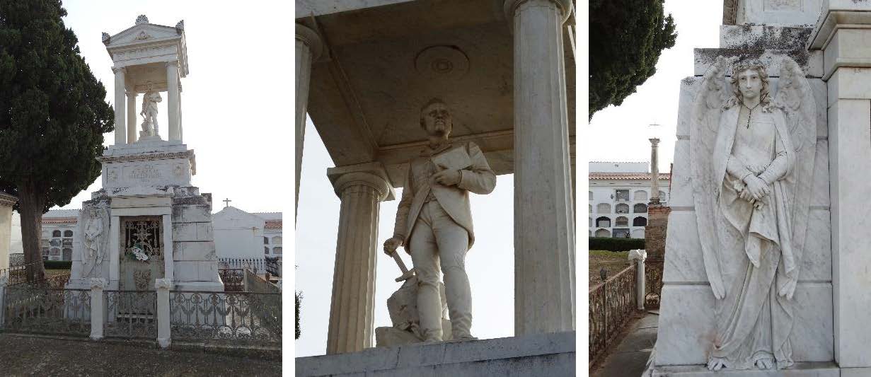 En Badajoz y tras un complejo proceso a lo largo del siglo XIX con diferentes enclaves (González, 2011 y Meléndez, 2016), el cementerio de San Juan, conocido como cementerio viejo, fue uno de los camposantos más tempranos de la región al inaugurarse en 1839. Dividido en 7 departamentos, presenta lujosos panteones con tipologías neogóticas, clasicistas y egiptizantes, además de simbología masónica, como en los arquitectos de la Familia Vaca. Por su condición fronteriza, encontramos sepulcros firmados por talleres portugueses asentados en Lisboa o Badajoz: Germano, Rato, Gonçalves, Oliveira... Pero cabe subrayar el papel del escultor decimonónico Antonio Zoido, responsable de un amplio número de obras, que intervino igualmente en diversos monumentos públicos.