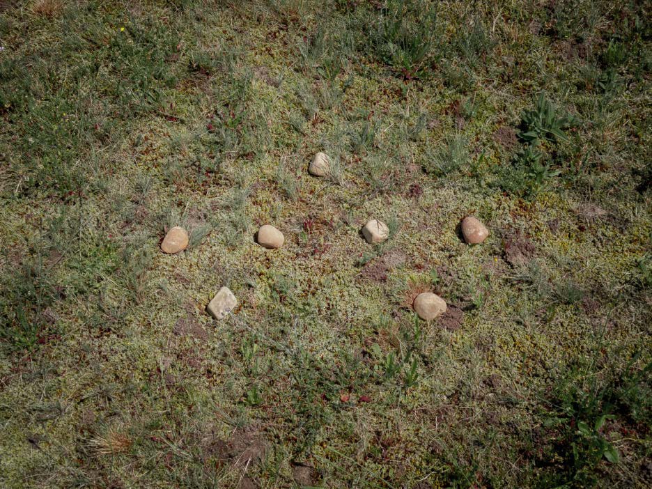 (YR): El orden y la repetición juegan un papel fundamental en mi trabajo artístico. Personalmente, me interesa especialmente el orden, ya que me permite abordar múltiples temas y representar formas geométricas mediante puntos o elementos concretos. Utilizo la instalación como una herramienta para lograr esto. Por ejemplo, recojo minúsculas piedras del Rif y las llevo conmigo a diferentes lugares, reemplazándolas por otras piedras que recojo durante mis viajes (el artista se refiere a Hijra/Rif-Landes). Al dispersar estas piedras en el suelo, se generan formas geométricas aleatorias, que pueden representar objetos figurativos como una barca, una casa, una montaña, un árbol, y así sucesivamente (Fig. 2).