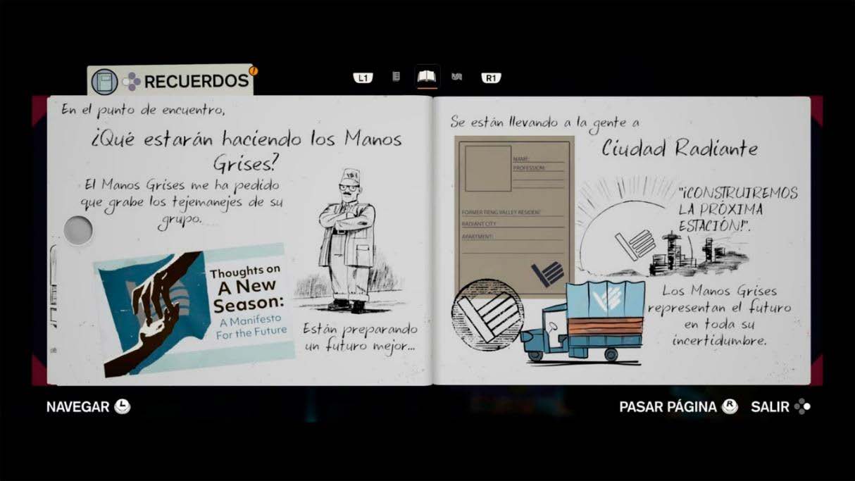 El giro imaginario, por otra parte, supone una vuelta de tuerca más, al cuestionar las relaciones tradicionales entre lo documental y lo fotográfico para abrir la puerta a una serie de expresiones como la animación, el cómic (o el dibujo) (Català, 2021, p. 176), y que se presta a explorar a través de imágenes-no- técnicas aspectos que no pertenecen a la realidad visible o que resulta difícil o problemático representar con la realidad visible, lo que ha llevado a que, en los últimos años hayamos asistido a un florecimiento de documentales de animación que muchas veces tratan temas como la guerra o la memoria histórica (Arnau Roselló, 2025). Así pues, todo acto de documentación en el videojuego pertenecería en realidad a esta vertiente imaginaria, basada en imágenes y situaciones previamente diseñadas y construidas como animación, bien sea escribir un diario o tomar fotografías.