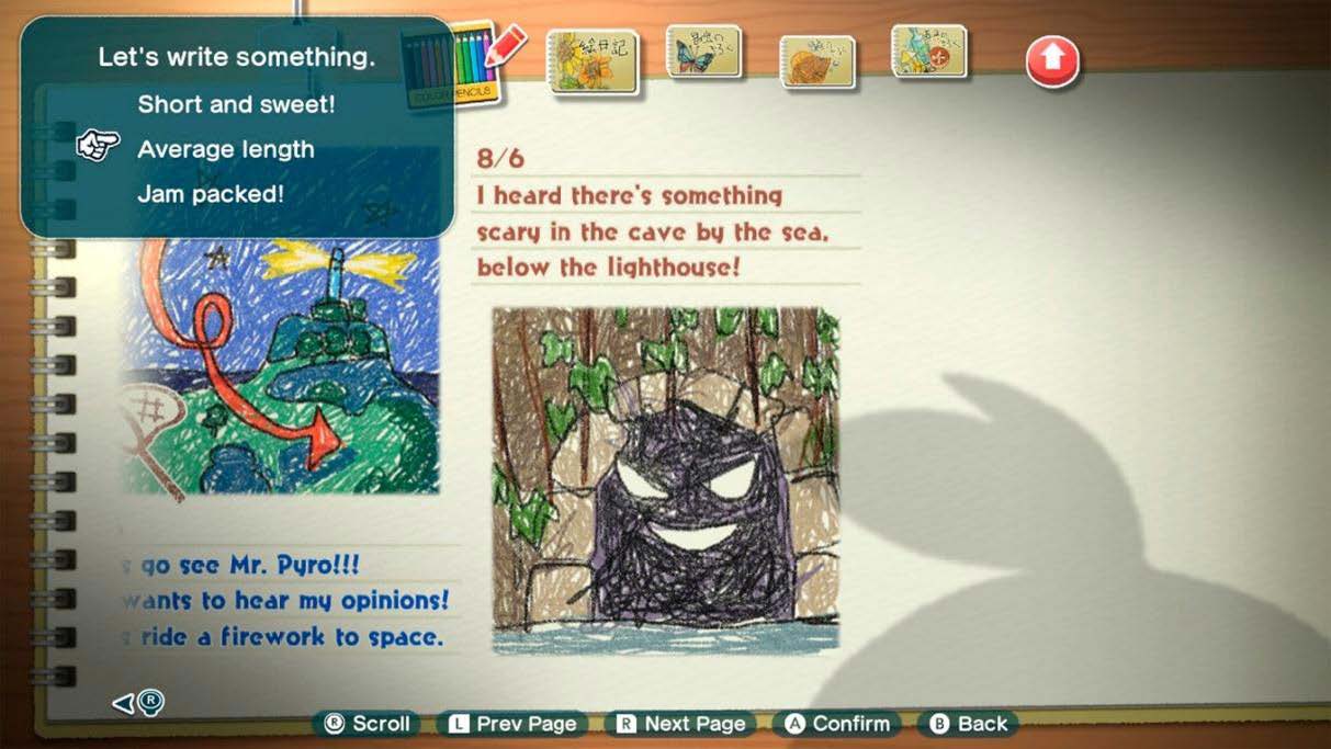 (Martín-Núñez, 2020, p. 83), realzando la belleza del espacio del pasado (Fig. 1 y 2). En Natsu-Mon, en cambio, el personaje no dispone de cámara de fotos por lo que el niño dibuja en su diario todo aquello que resume su experiencia día a día: los insectos que captura, las personas con las que se cruza o los eventos más destacables. Aunque la libertad para representar el mundo ludoficcional está muy limitada, el diario de cada jugador será completamente diferente, ya solo al permitir personalizarlo con diferentes anotaciones —longitud corta, media o repleta—, utilizando determinados sellos y el orden en el que se configura el diario de los treinta días de agosto (Fig. 3).