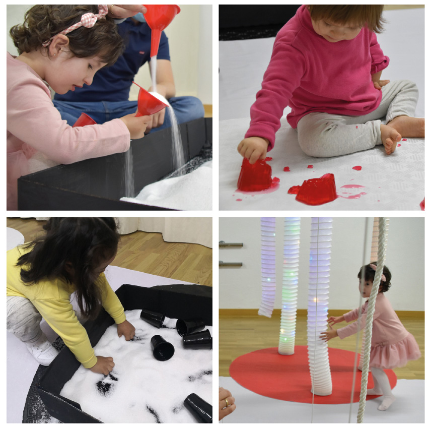 Disponibilidad y escucha activa hacia las acciones espontáneas de los infantes. Las experiencias inmersivas propuestas han proporcionado en los niños y niñas diferentes situaciones de aprendizaje: acciones de exploración con los materiales y con los sentidos, diferentes formas de acción y creación: construir/ destruir, llenar/vaciar, diferentes acciones de incorporación del espacio: desplazamientos/ quietud, dentro/fuera, aparecer/desaparecer, así como diferentes acciones de relación con los otros: imitación, persecución o relación mediada con objetos entre muchas otras. Lo más significativo de estas acciones es que no eran acciones dirigidas, tal y como se suele dar en los diferentes espacios de atención temprana, sino que partían del juego espontáneo del niño, permitiéndoles ser libres en sus formas de ser y de estar, respetando sus tiempos, sus movimientos y sus acciones como algo propio, que les reafirma y alimenta su experiencia subjetiva. De una manera indirecta, a través de diferentes ambientes, desafiamos a los niños y niñas a sentir, pensar y actuar, poniendo en juego acciones propias del infante que son imposibles de estimular por otros medios. Y es que según exponen Mesías y Lerma (2018), citando a Cabanellas: «En educación como en investigación, a veces es más importante escuchar que proponer» (citado en Mesías y Lerma, 2018, p. 128).