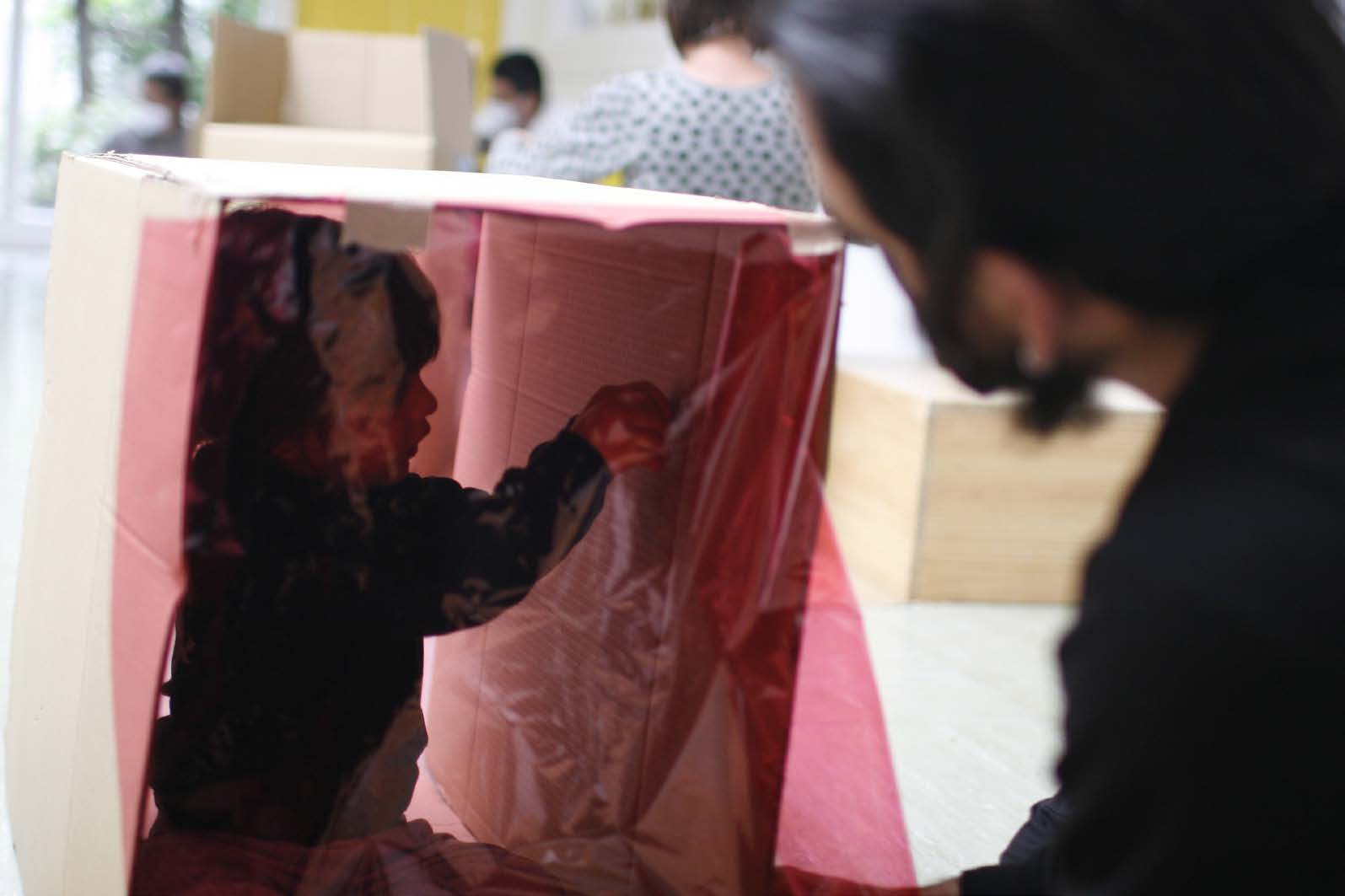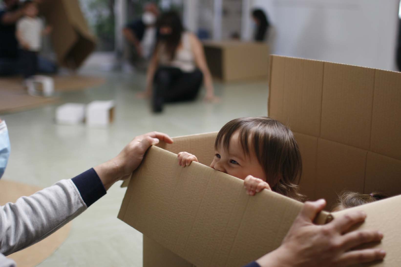 La propuesta presentada se vale de cajas de cartón de color neutro para activar el juego, un material que no llama la atención desde la mirada adulta, pero que es versátil y que reclama usos diversos. Al fin y al cabo, los elementos sencillos y cotidianos pueden ser una fuente de inspiración, de creatividad y de juego.