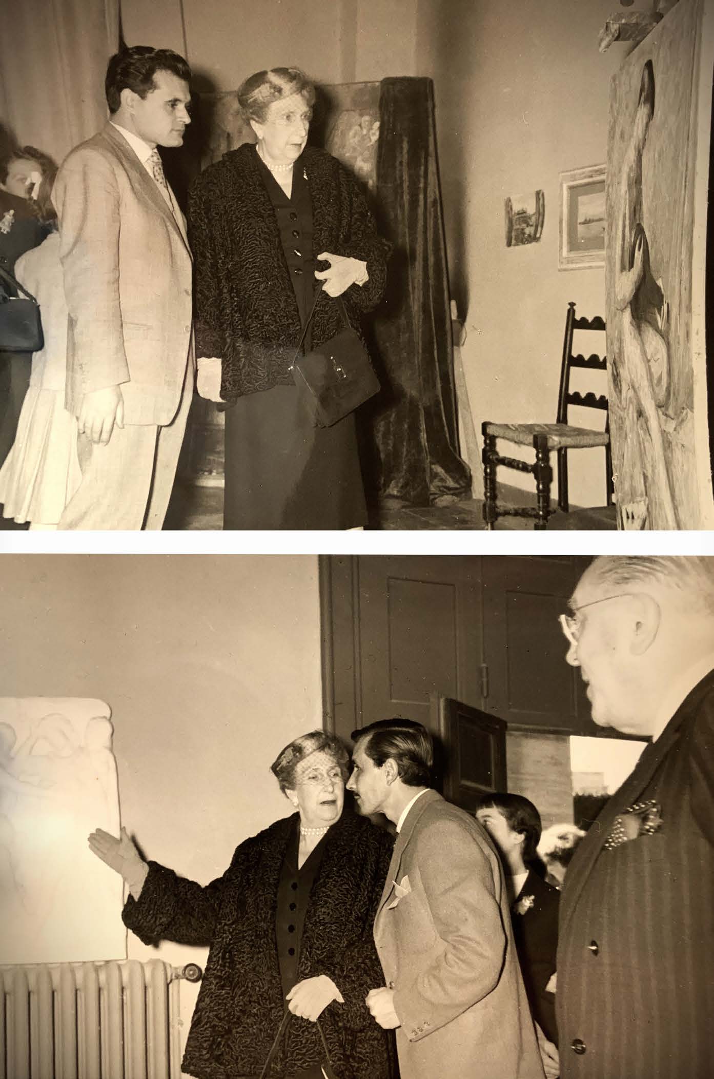 Se establecía, así, la Academia como un faro o punto de referencia del arte, la cultura y la diplomacia española fuera de las fronteras. No es de extrañar, por tanto, que uno de los últimos actos realizados por el Marqués de Lozoya fuese el de guía de Juan de Borbón en el año de 1956 durante la visita de éste a la Academia, donde tuvo oportunidad de reunirse con los pensionados (fig. 5) (Archivo Fotográfico, 1956a). En este sentido, las relaciones desde la dirección con la madre de este, Victoria Eugenia de Battenberg, también debieron de ser muy estrechas, puesto que encontramos también su presencia en alguna ocasión (fig. 6) (Archivo Fotográfico, 1956b).