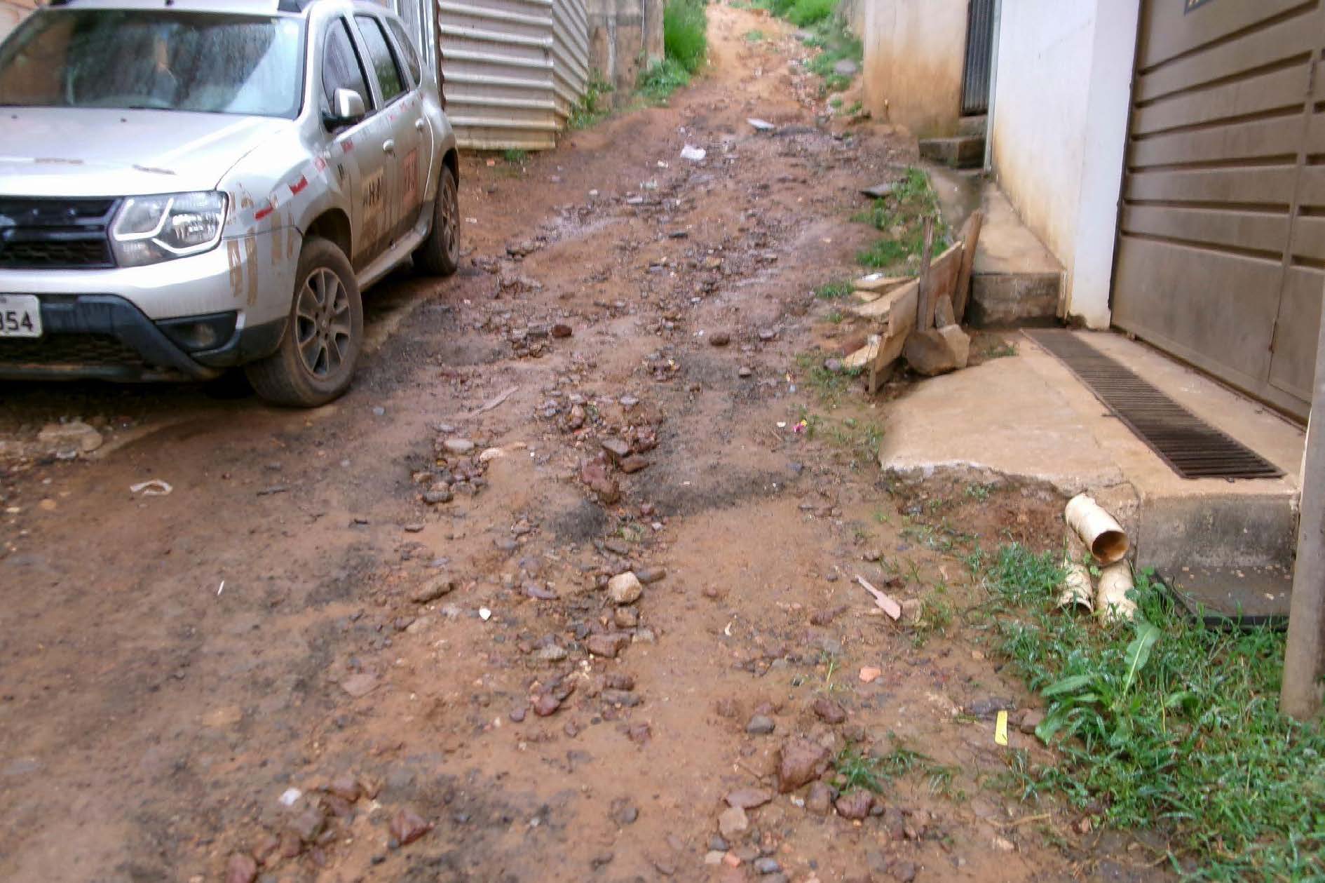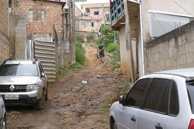 La Escuela Provincial João Ramos Filho, en la que se llevan a cabo las actividades del proyecto Nome do Projeto, se fundó en 2013 como resultado de la movilización de los residentes para ofrecer educación secundaria en la región y, desde 2015, también ofrece cursos de formación profesional dirigidos a actividades más empleables en el municipio. Se encuentra en Cabanas, el barrio que forma el centro del territorio conocido por la población como Ciudad Alta, ubicado en las afueras de Mariana, después de la autopista, y formado también por los barrios de Cartucha y Santa Rita de Cássia, y la ocupación de Vila Serrinha. La zona, como podemos ver en la fotografía de abajo (Fig. 5), producida por otro participante en respuesta a la actividad: “Fotografía el sitio que menos te guste del barrio en el que vives”, se caracteriza por calles empinadas, muchas de ellas sin aceras, y edificios populares, la mayoría autoconstruidos e inacabados. Un detalle, las pegatinas reflectantes aplicadas al coche Renault, que se ve mejor en la siguiente fotografía (Fig. 6), realizada unos instantes después por el mismo participante, indica otra característica de esta región: sus residentes son en su mayoría trabajadores directos o indirectos de la minería.