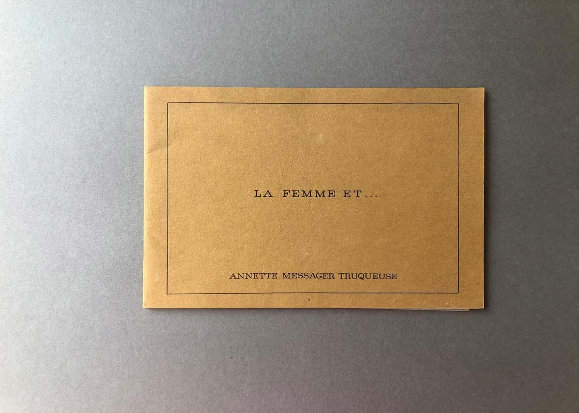 Messager desarrolla su obra a través de una serie de clasificaciones de carácter irónico donde va asumiendo diversos roles sociales, mujer artista, práctica, la vendedora ambulante o la coleccionista entre otros, a veces asignados por su condición de femenina. Durante el ciclo de su papel de “Annette Messager truqueuse” realiza La Femme et… (1975), un libro de artista donde se vale del propio cuerpo como soporte de creación (Fig. 3). La artista explica la actitud que acompaña a su rol truqueuse3 como una mujer que nunca está ociosa y nunca le falta material, ya que juega consigo misma (Printed Matter, s.f.).