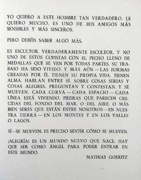 Arte vivo es precisamente aquel que marcha con el tiempo. Y no precisamente porque se mueva como los móviles [...]. De una obra actual habría de decirse, está viva. Muchas obras antiguas están vivas, están tan vivas como si hubieran nacido hoy. Muchas modernas nacen muertas. Los investigadores de la Historia del Arte llegan a aceptar este punto de vista. Pero en su mayoría, odian las formas más vivas del arte actual. Es lamentable. E incomprensible.