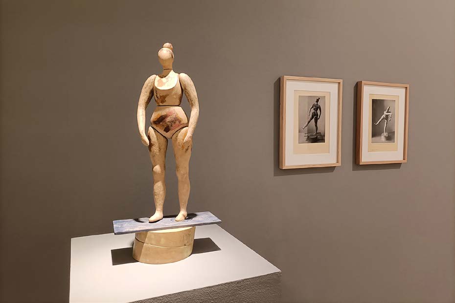 Una vez finalizada la Guerra Civil, el escultor retomó su labor con series como Tauromaquia, relieves donde predominan composiciones de líneas curvas, extremadamente dinámicas, y donde algunas figuras se multiplican, al modo futurista, para mostrar los distintos instantes de una acción. Su interés por el movimiento y la mecánica está presente también en su Estudio estereotómico de coyunturas estatutarias, un pequeño maniquí realizado en 1940, y que presentó en el Salón de los Once de 1946, acompañado por una colección de fotografías que lo mostraban en distintas poses. El mismo concepto de figuras móviles se observa en los dos maniquíes que ese mismo año le encarga la peletería madrileña Lobel, figuras que combinan los elementos sólidos de las partes visibles (piernas, manos y cabeza), dejando oculto, tras la vestimenta, el mecanismo de articulación corporal formado por madera y metal. En una carta de Miró a Ferrant, el pintor se refiere, precisamente, a dichos maniquíes, que había visto en unas “magníficas fotos” que el escultor le había enviado en una misiva anterior, y que le “gustaron muchísimo”7. Las obras articuladas planteaban una exploración sobre las coyunturas, o juntas movibles entre las piezas, cuyo juego permite alterar la postura de la figura, y por tanto su forma, aunque ésta no se desplace.