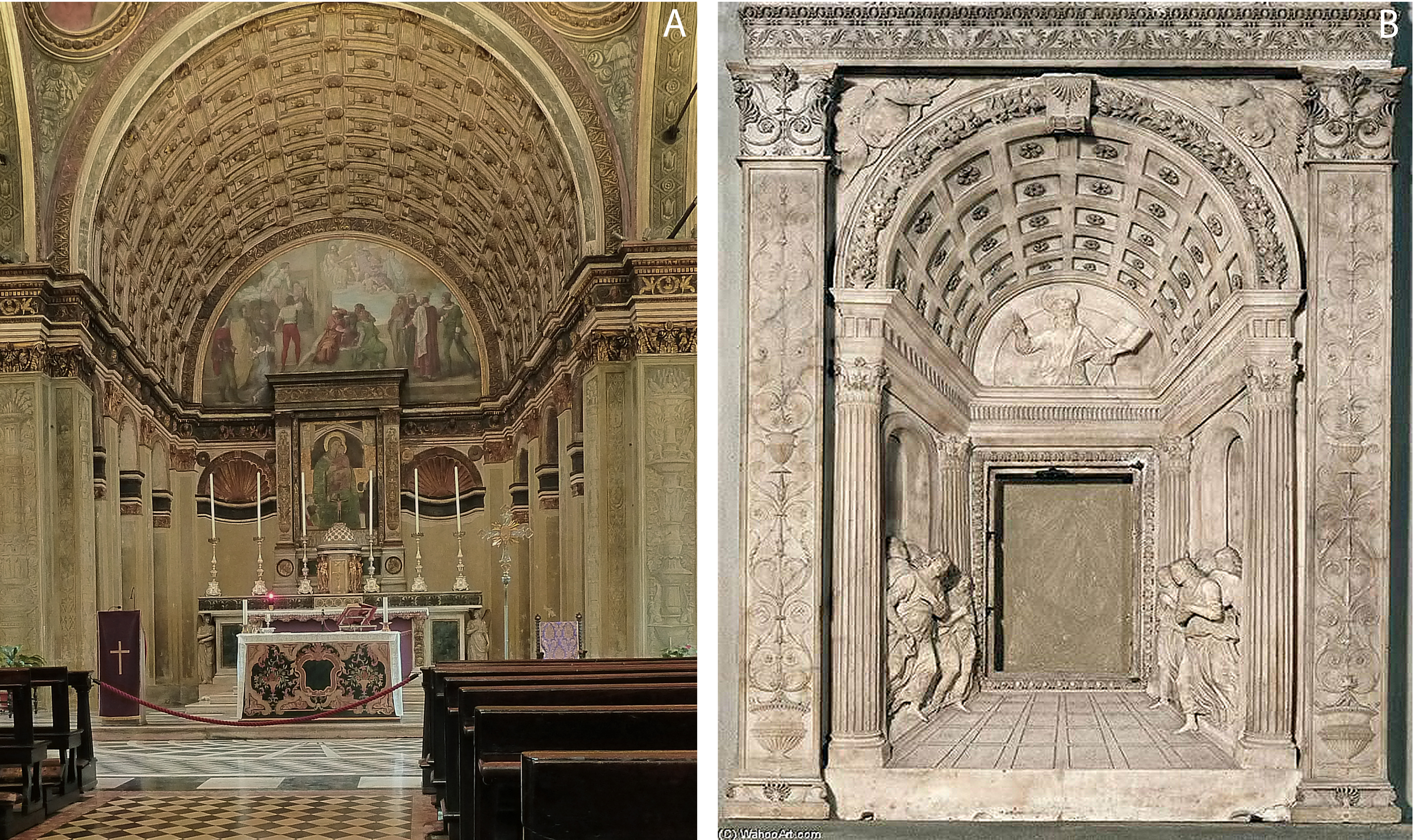- Pintura mural, capilla mayor de la iglesia de Santa María presso. San Sátiro de Milán. Figura 1B. Tabernáculo, iglesia de San Lorenzo de Florencia.