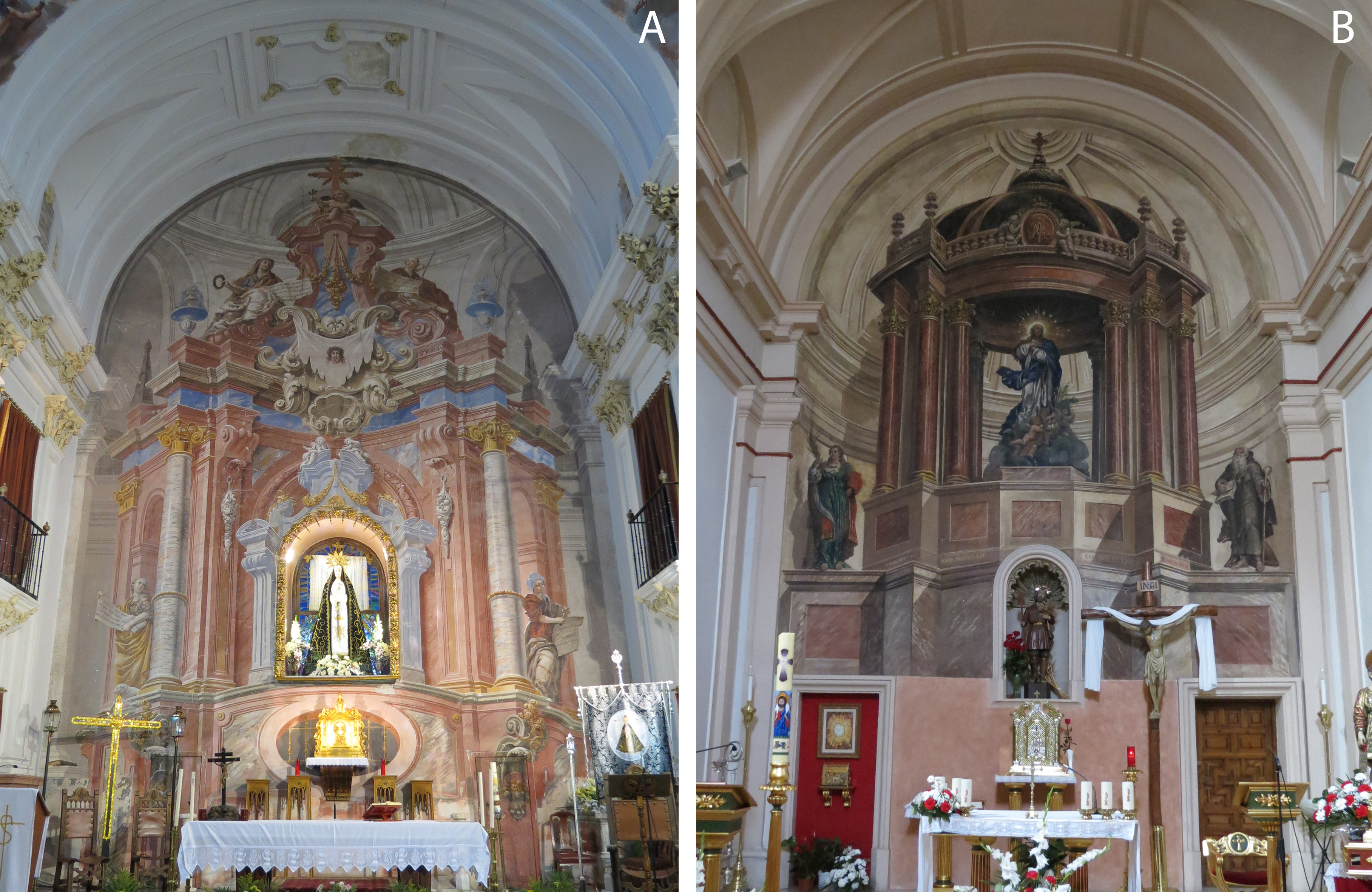 - Figura 2A. Retablo fingido. Ermita de Nuestra Señora de la Soledad, Puebla de Montalbán (Toledo).Figura 2B. Retablo fingido. Ermita de San Isidro, Alcalá de Henares (Madrid).