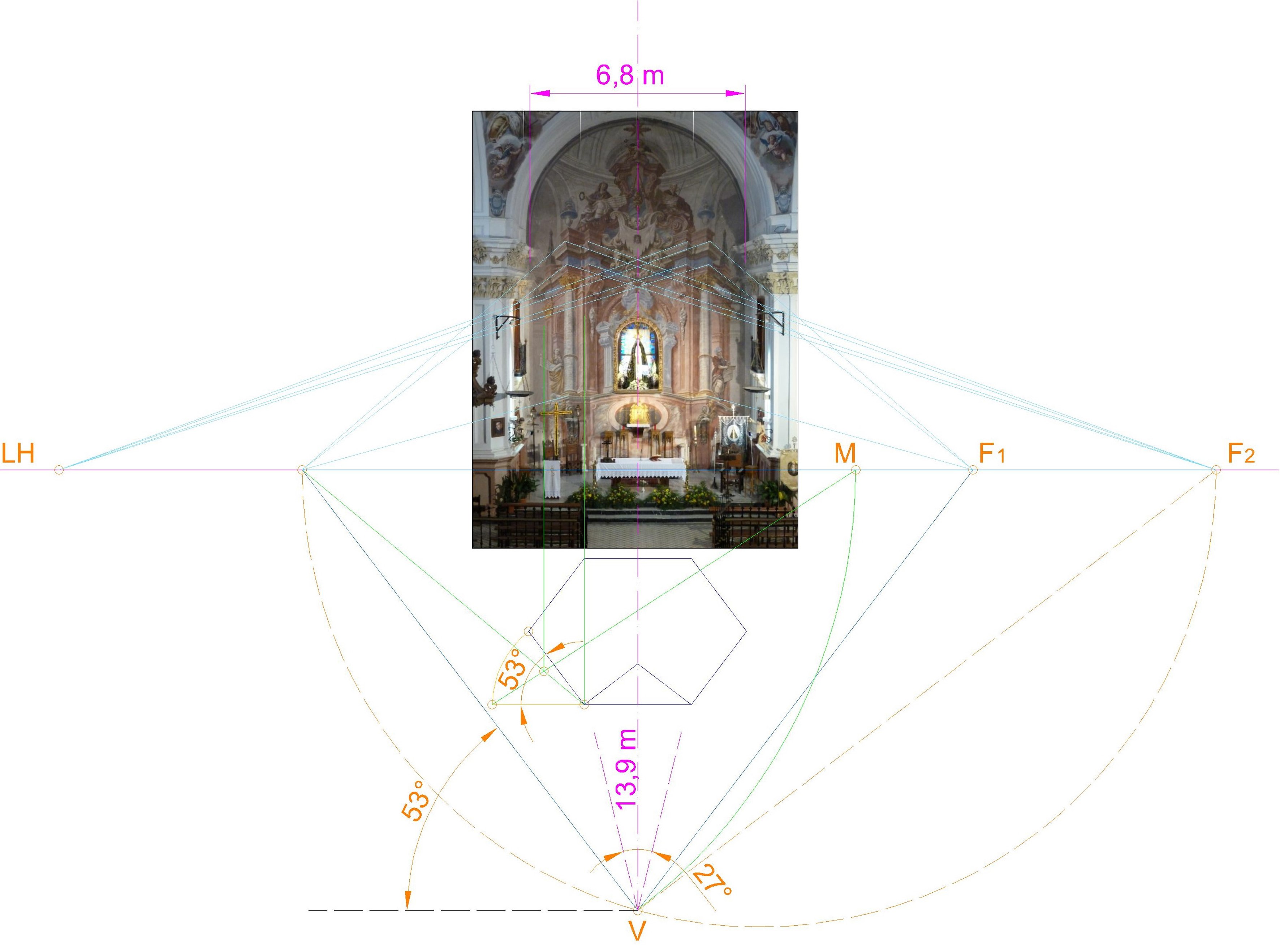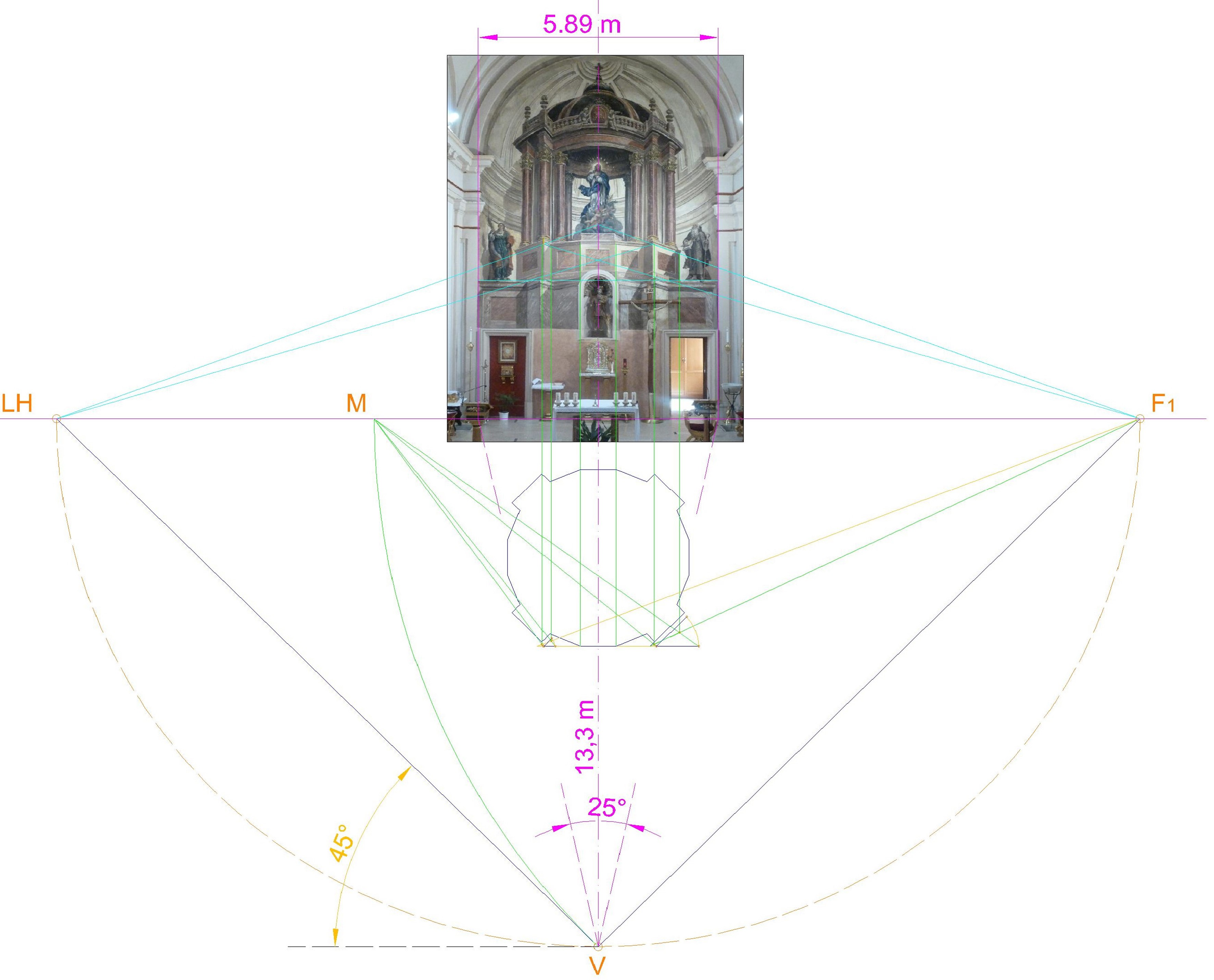 - Figura 5. Determinación de la perspectiva del Tabernáculo con la que se estructura la pintura mural de la ermita de San Isidro.