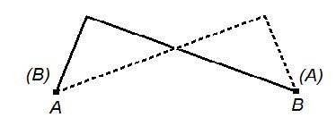 Leibniz aduce la posibilidad de superponer el punto (A) sobre B y el punto (B) sobre A sin alterar el complejo continuo que liga A y B (el primer complejo se ilustra con trazo continuo, el segundo con trazo discreto), salvo por el hecho de tener que imaginar una rotación que demanda una nueva dimensión. La dificultad de llevar a cabo efectivamente la superposición sin admitir una rotación que involucre una nueva dimensión recuerda el problema kantiano de la congruencia de los incongruentes;30 problema frente al cual Wittgenstein, en sintonía con Leibniz, anota: