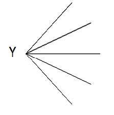 «La forma del objeto [señala Wittgenstein] es la posibilidad de su ocurrencia en estados de cosas».50 Así entonces, dado un objeto Y, su forma lógica es el despliegue de todas las posibles combinaciones en las que puede presentarse. Esto se puede expresar en un esquema como el que muestra la figura 4. Y es un punto, y todas las ramificaciones que se desprenden de Y figuran todas las rectas en las que Y participa (todos los estados-de-cosas que contemplan a Y como uno de sus eslabones). La forma lógica de un objeto hace las veces de una relación de incidencia que determina en qué posibles estados-de-cosas puede el objeto articularse. De igual manera, la forma lógica de un punto –Y– en el Analysis situs anticipa posibles incidencias: AnYγBnYγCnYγDnY con An, Bn, Cn, Dn una abigarrada colección de tétradas de puntos que hacen posible la individualización de Y.