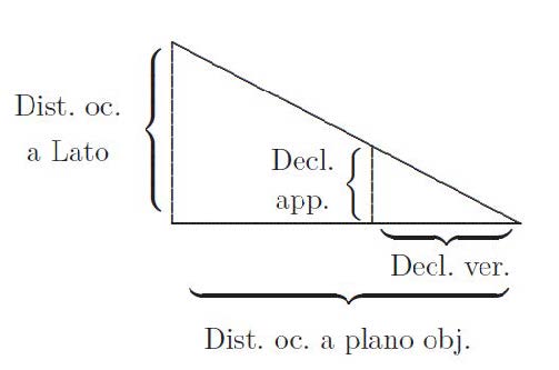 Por consiguiente, las inclinaciones y las declinaciones de los puntos aparentes son respecto de las inclinaciones y las declinaciones de los puntos objetivos lo que la distancia del espectador respecto del plano de la Tabula es en relación con la distancia del espectador respecto del plano objetivo. Las distancias del espectador pueden entenderse como las partes de las radios principales interrumpidas por los diferentes planos.