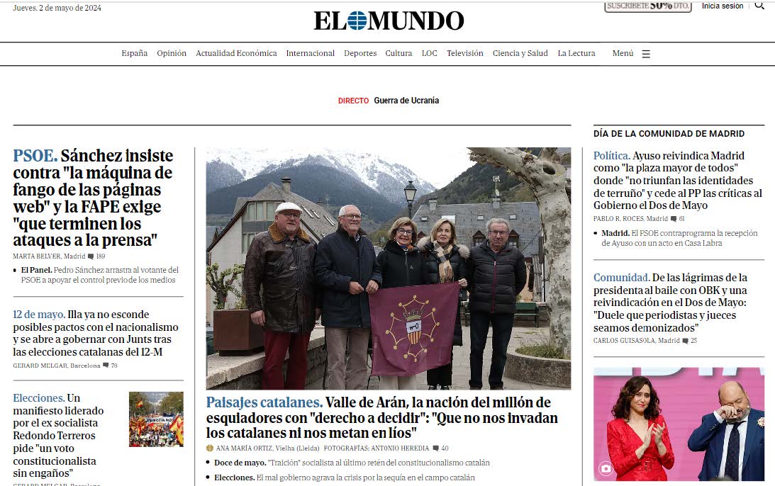 El PSOE inicia el señalamiento de los “pseudomedios” que vincula al PP (Noa de la Torre, Pablo R. Roces, Teresa López Pavón, El Mundo, 01/05/2024)