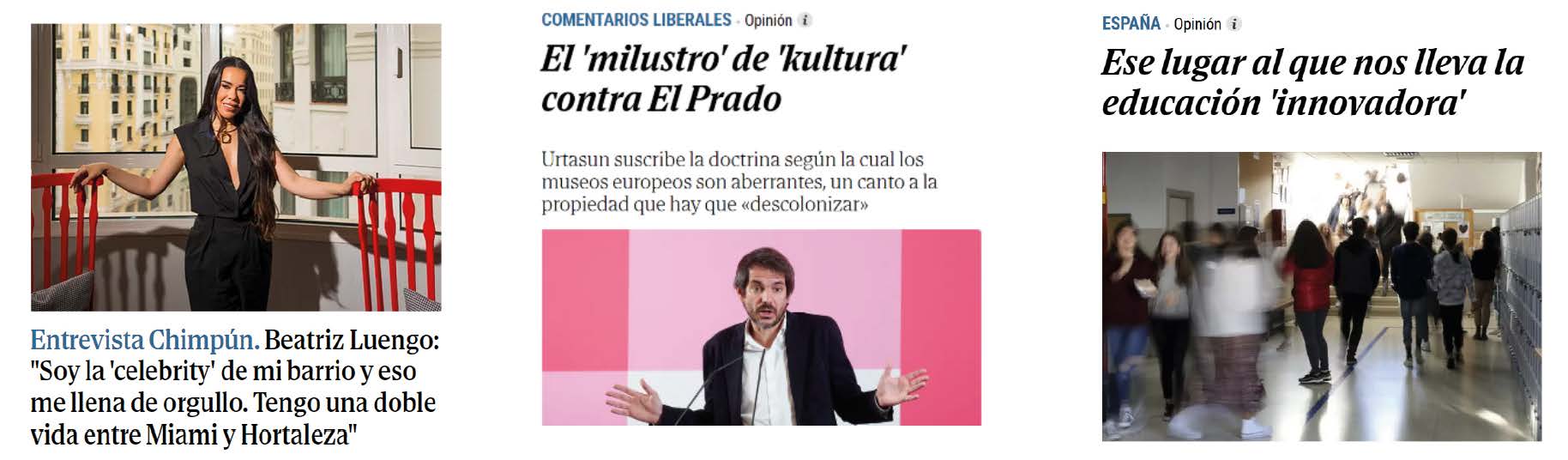 La muestra puede considerarse representativa, ya que incluye tanto noticias de agencia (EFE, EuropaPress), como noticias elaboradas por los redactores del periódico y artículos de opinión realizados por columnistas especializados.