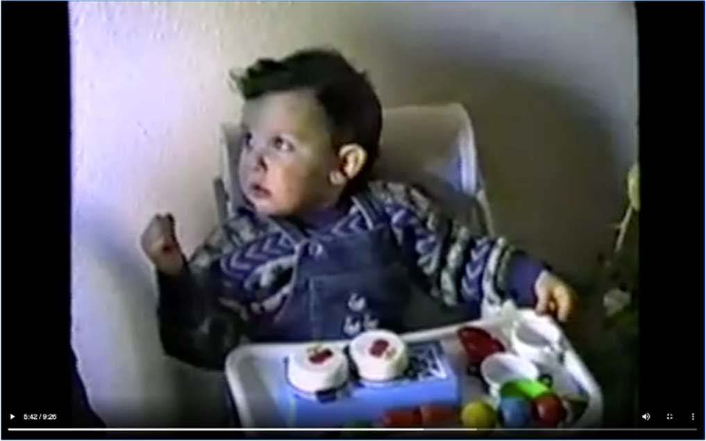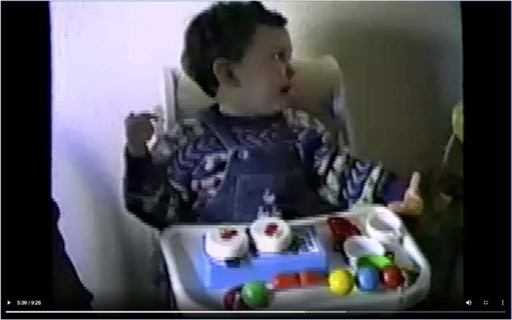 En la primera llamada (línea 1), realizada de forma espontánea, CHI mira hacia su lado izquierdo, dado que su madre se encuentra en esa dirección en la casa, aunque no visible (figura 1), sin mirar ni a su padre, que se encarga de la grabación y se halla situado detrás de la cámara, ni a ABU, situada a su lado derecho. Por la dirección de la mirada y la espontaneidad de la llamada, asumimos que CHI trata de crear un marco de atención conjunta con su madre.