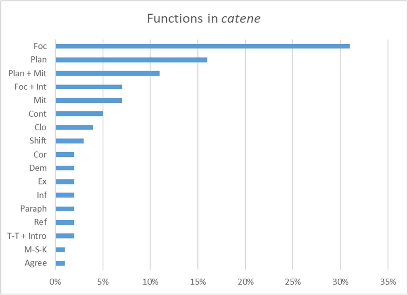 In addition, a separate ELAN tier was used to indicate clusters of DMs, identifying co-occurring DMs with the same function (catene, ‘chains’, Bazzanella, 2011):