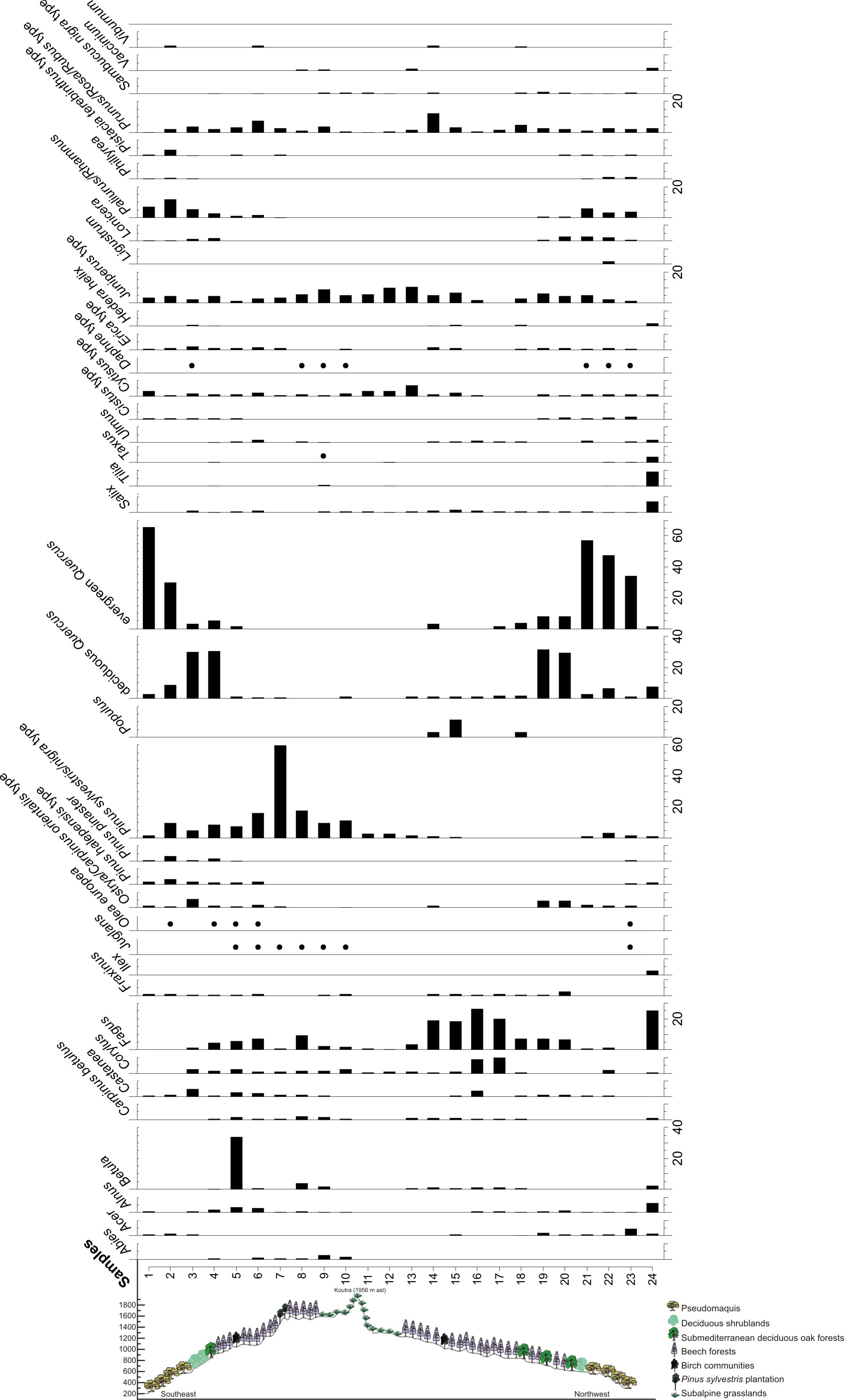 The relationship between vegetation and modern pollen assemblages on Mount Paggeo (NE Greece)