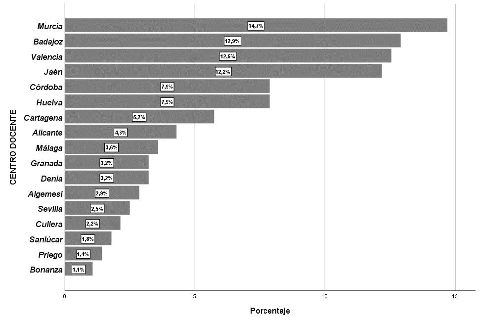 Para este estudio, se administró el instrumento a un total de 279 docentes en activo de diecisiete centros educativos de Educación Secundaria y Bachillerato de cuatro comunidades autónomas de España (Andalucía, Extremadura, Murcia y Valencia) con el fin de analizar sus respuestas y así conocer el grado y modo de implementación de la metodología ABP en sus aulas y las posibles necesidades ulteriores, recibiendo un índice de respuesta según refleja la figura 1.