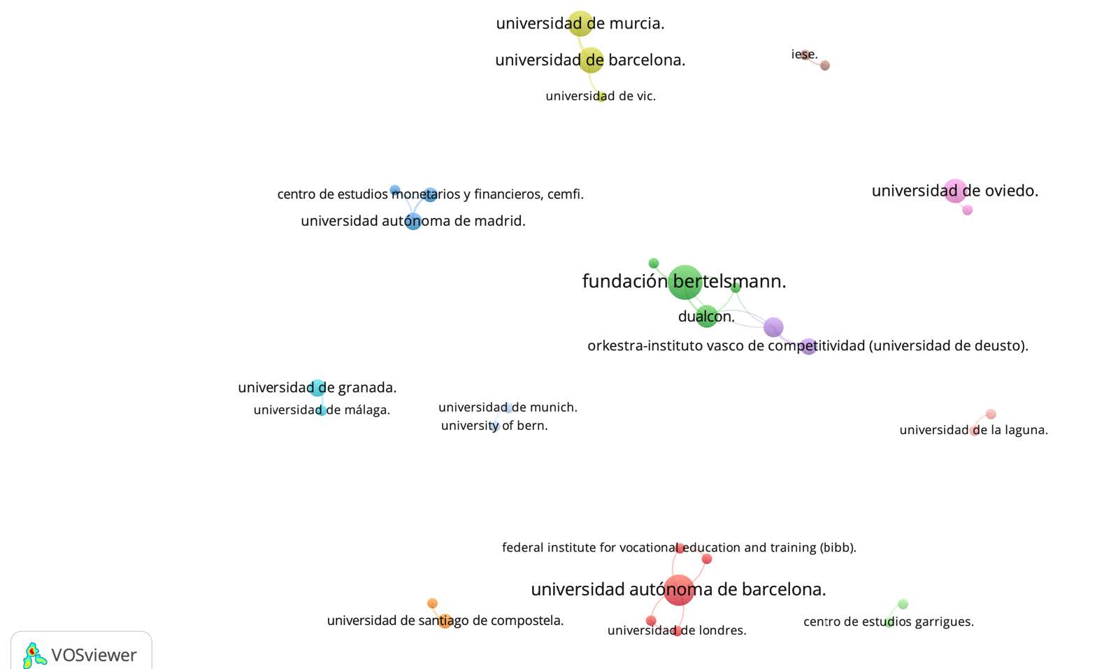 La mayoría de los puestos del ranking están ocupados por universidades españolas, situándose en la primera posición la Universidad Autónoma de Barcelona, gracias, en gran parte, a los investigadores del Grupo Interdisciplinario de Políticas Educativas (GIPE) y del Institut d’Estudis del Treball. Fuera del ámbito universitario, destaca el segundo puesto de la Fundación Bertelsmann. No es de extrañar esta posición, pues esta fundación ha sido un actor destacado en la promoción de la FP Dual en España desde sus inicios (Echeverría Samanes, 2016).