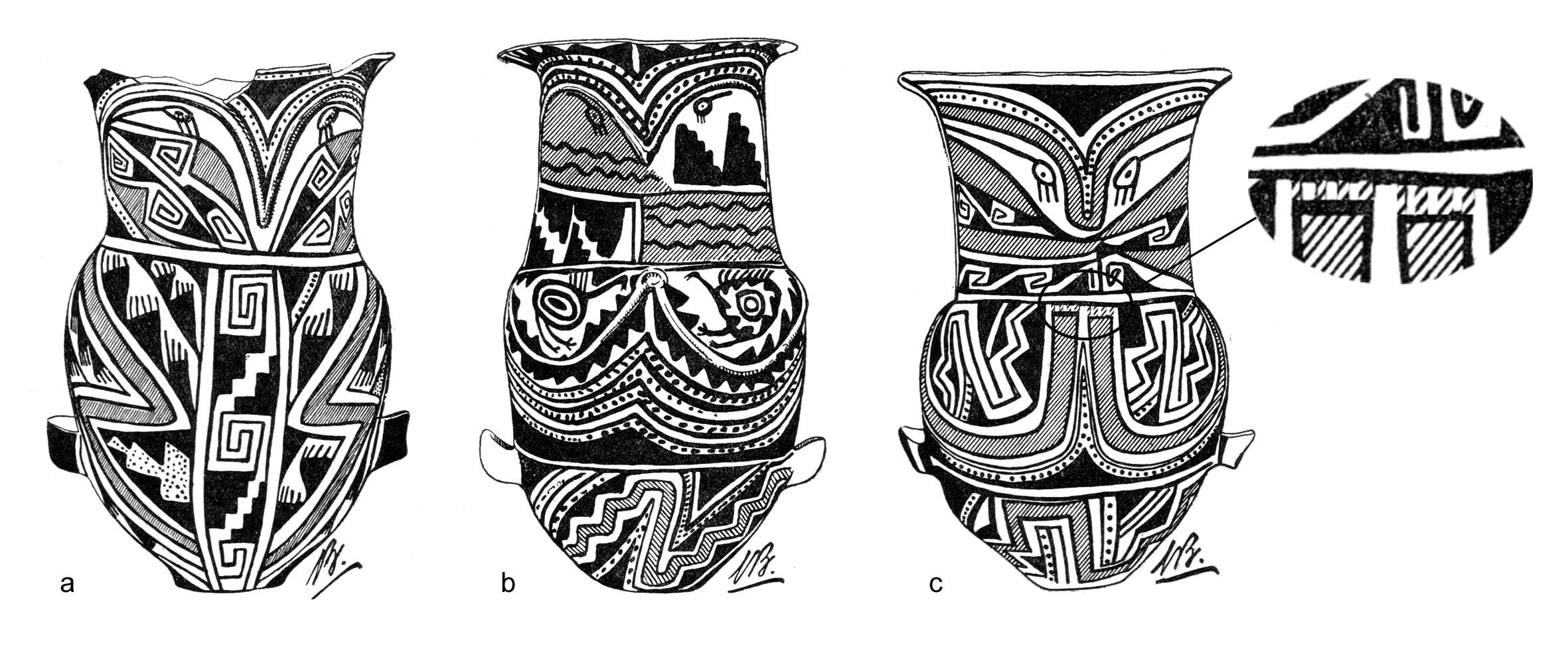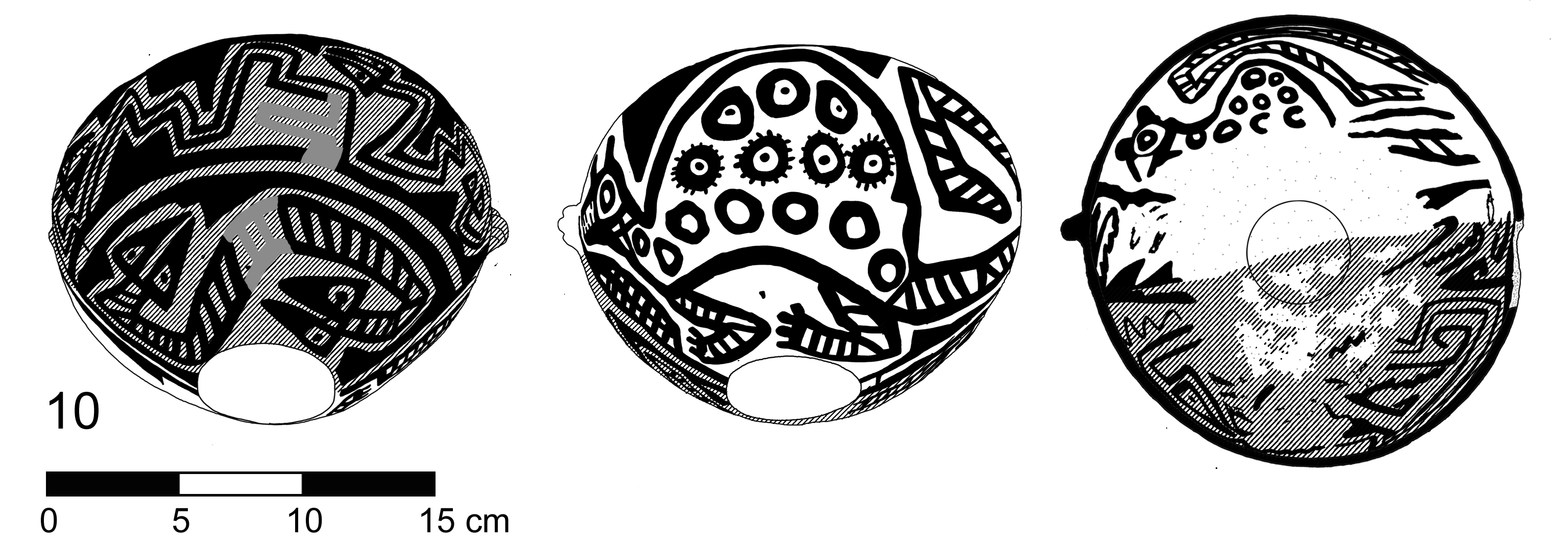 A partir del trabajo con colecciones arqueológicas de museos se presenta un conjunto de vasijas Santa María «de tres colores» (negro y rojo sobre blanco), exponentes muy tardíos de la Tradición Santa María de la región de Yocavil, Noroeste Argentino. Algunas son vasijas únicas o rarezas; otras se repiten y nos permiten reconocer variantes con rasgos muy consistentes. La descripción incluye una comparación que establece contrastes con las variantes Santa María «tricolor» clásicas, propias de momentos más tempranos en la producción del estilo. La observación de patrones en los modos de aplicación de la pintura roja y sus tonalidades ayuda a delinear criterios para la identificación de estas variantes santamarianas en piezas completas y conjuntos fragmentarios, permitiendo su empleo como un valioso indicador cronológico.